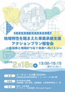 セミナー2026/2/18 「地域特性を踏まえた事業承継支援アクションプラン報告会」開催(中国経済産業局)