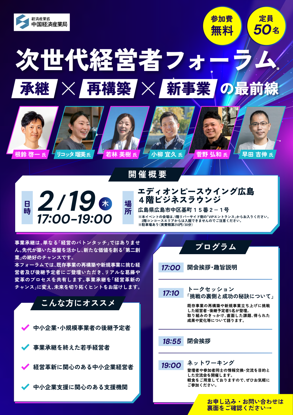 セミナー2026/2/19 「次世代経営者フォーラム 承継×再構築×新事業の最前線」を開催(中国経済産業局)